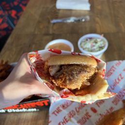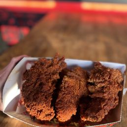 I always recommend this spot to my friends & family who like Dave's hot chicken because I honestly think Red Chicks tastes WAY better. The tenders can be quite big as well, so ordering extra "comeback" sauce is definitely a good idea. Their chicken is super crunchy & is full of flavor, plus the workers are always nice/helpful. I definitely recommend you give them a try if you're in the dtla area.