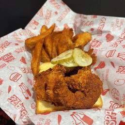 Excellent chicken!!! I love you can pick your own "heat". The fries are delicious too!! Highly recommend. But do place online order to pick up. Much faster.